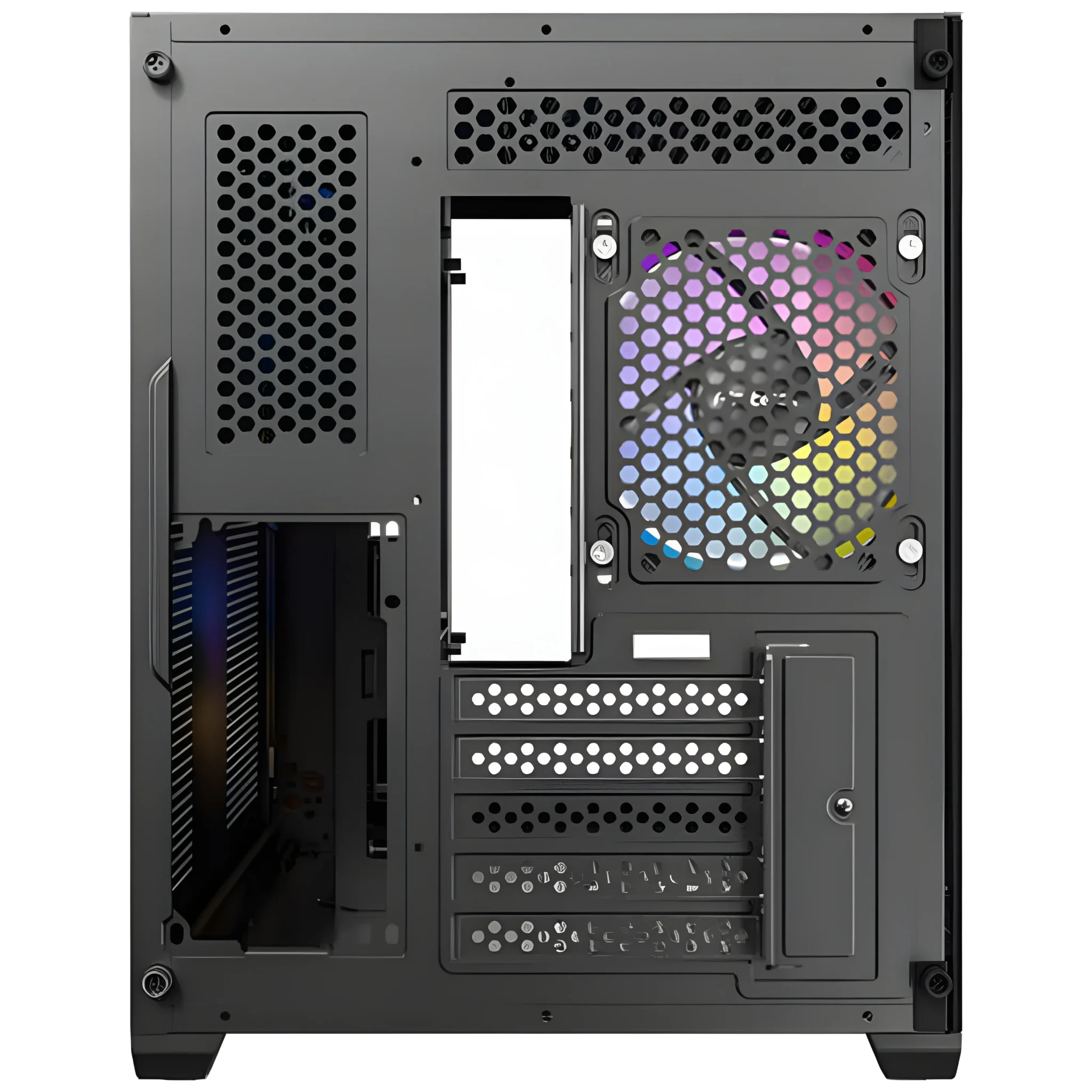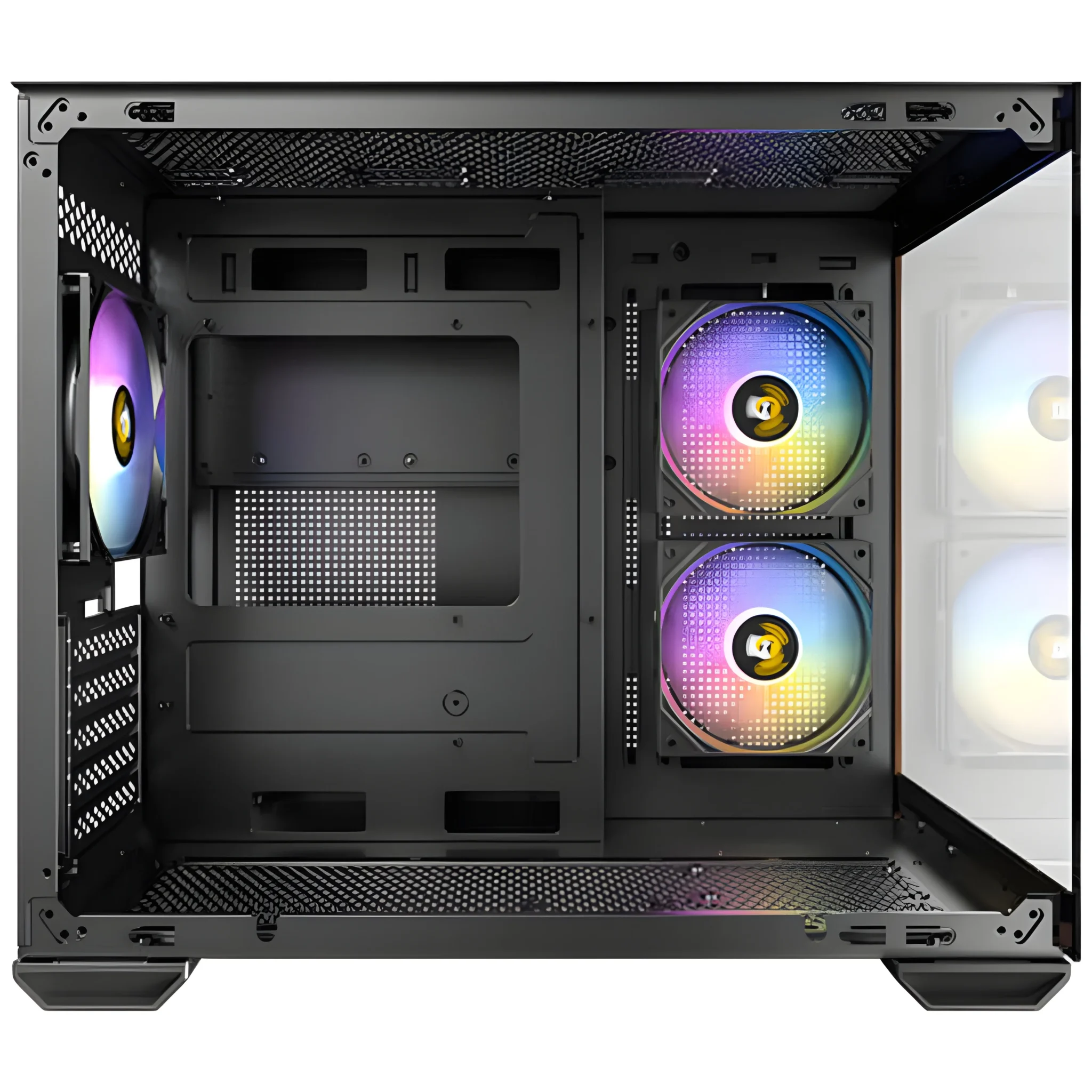 – 2 ventiladores inversos ARGB de 120 mm en el lado derecho