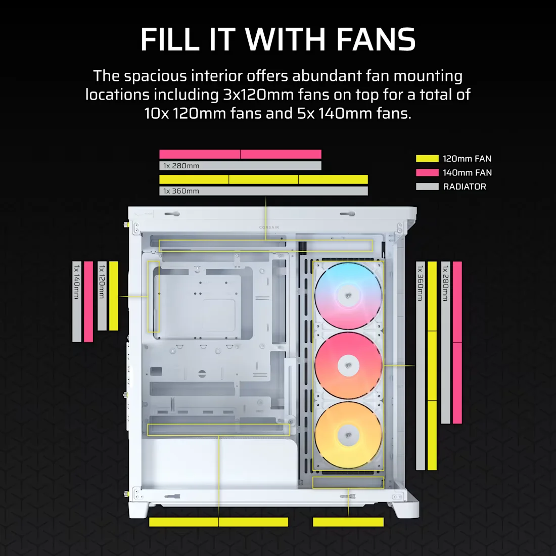 – 3 ventiladores Corsair RS ARGB Series en el frente