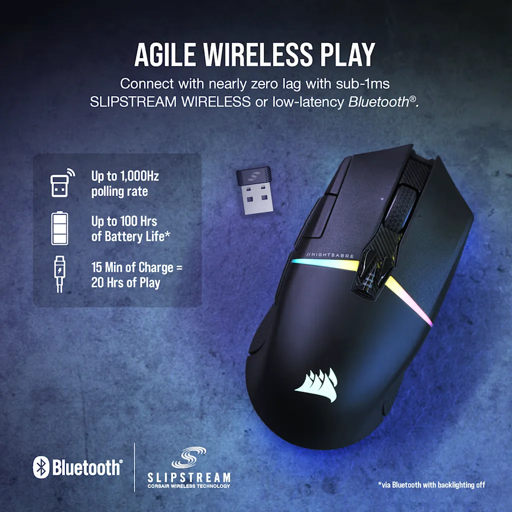 »Wireless SLIPSTREAM CORSAIR (≤ 1 ms) – conexión inalámbrica rápida para gaming.
