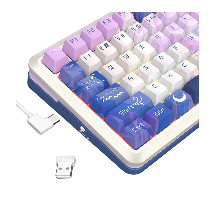 »Teclas: PBT side-engraved con gradiente translúcido, resistentes a sudor y desgaste.