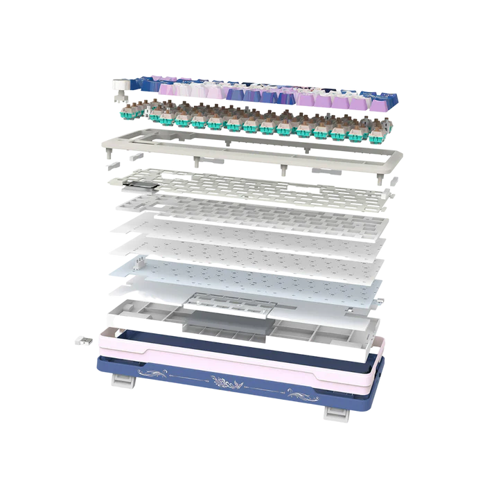 »Estructura: Montaje gasket para typing acolchado sin fatiga; 5 capas de acolchado para reducción de ruido.